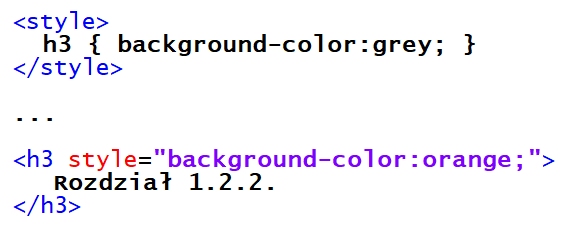 kolor czcionki będzie pomarańczowy